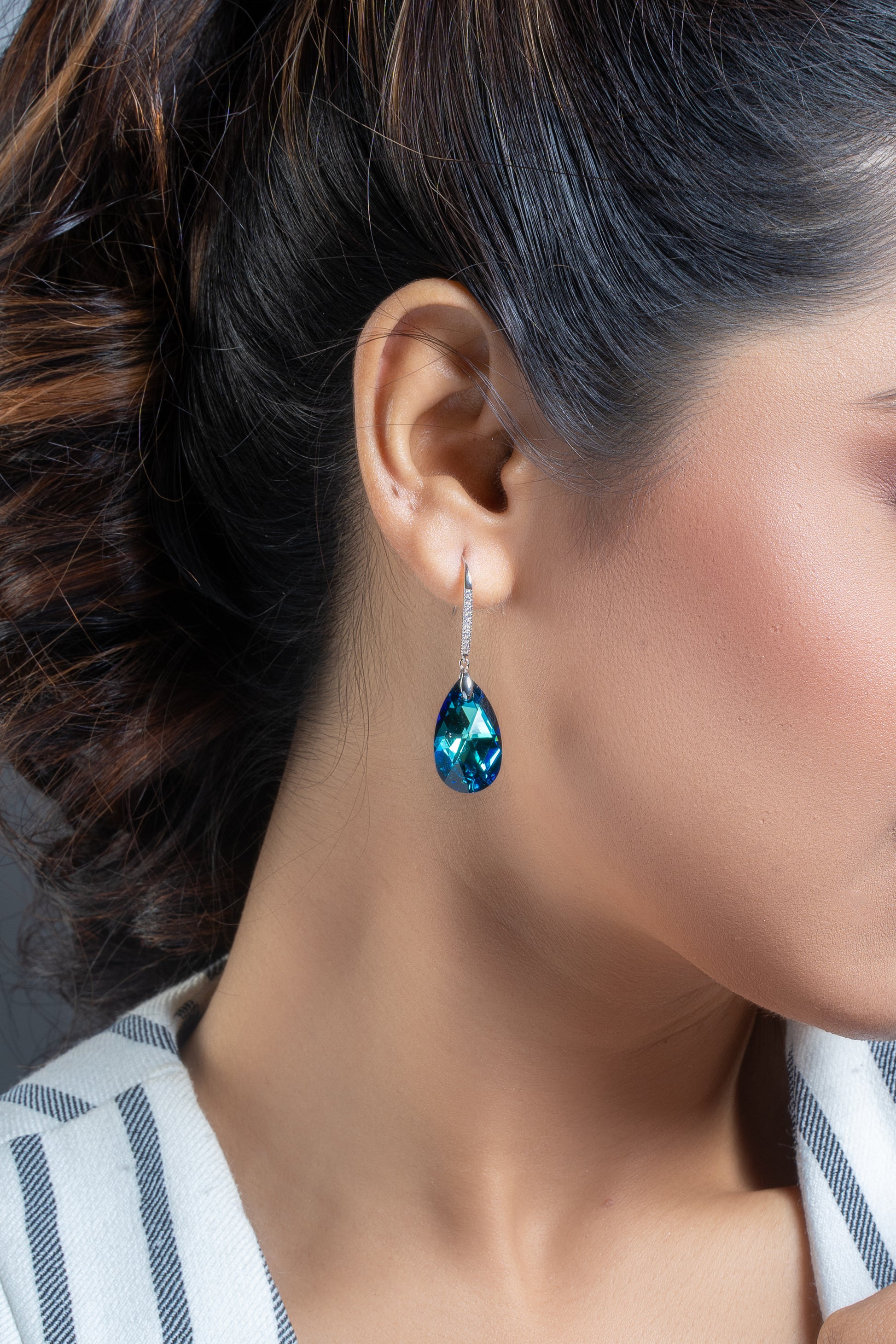 Blue Tear Drop Swarovski Crystal Earrings