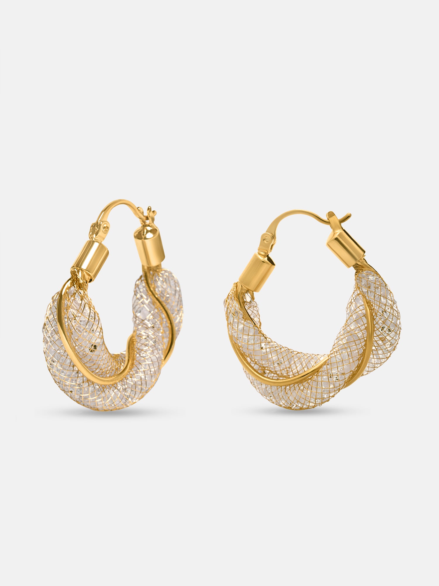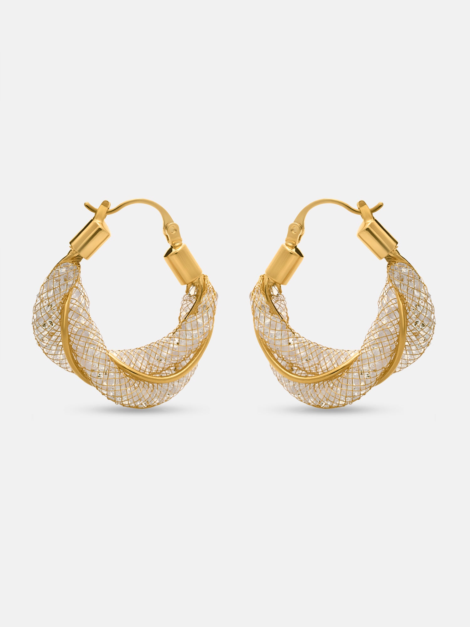 Elevate your everyday style with these demi-fine earrings, crafted in sterling steel and finished with radiant gold-tone plating. Lightweight yet durable, they’re designed for effortless elegance—perfect for daily wear or evening glamour.