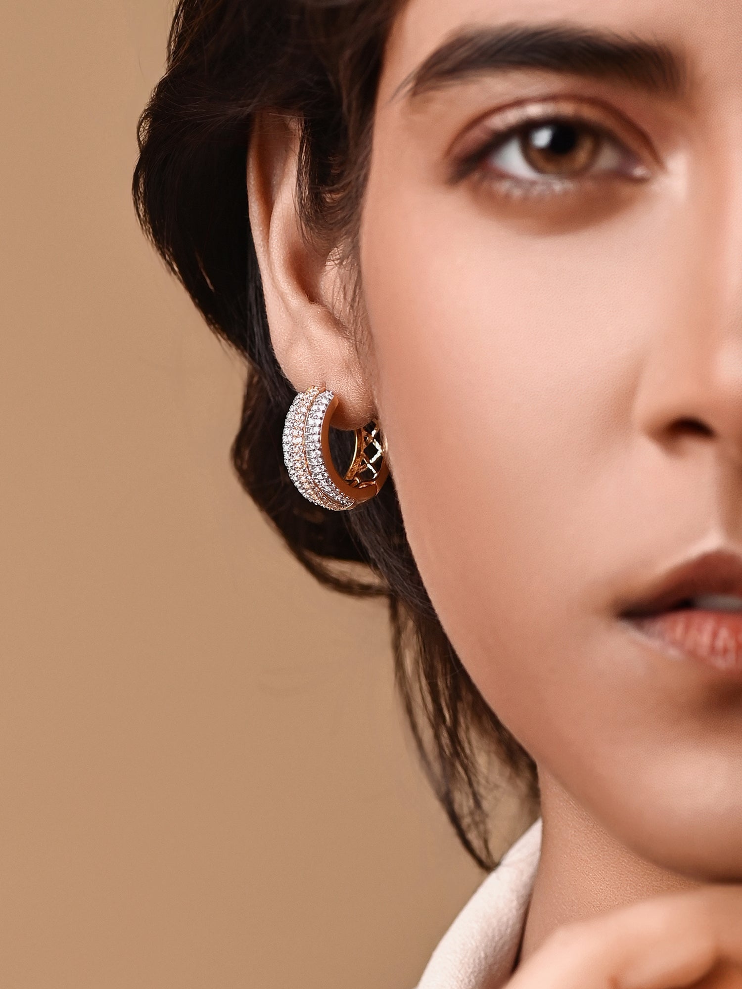 Discover the brilliance of our Everyday Wear earrings, crafted to perfection. These exquisite pieces sparkle with unparalleled radiance, capturing the essence of luxury. Adorned with shimmering Cubic Zirconia Stones, they exude timeless elegance, perfect for any occasion. Elevate your style with these stunning accessories, designed to captivate and enchant.