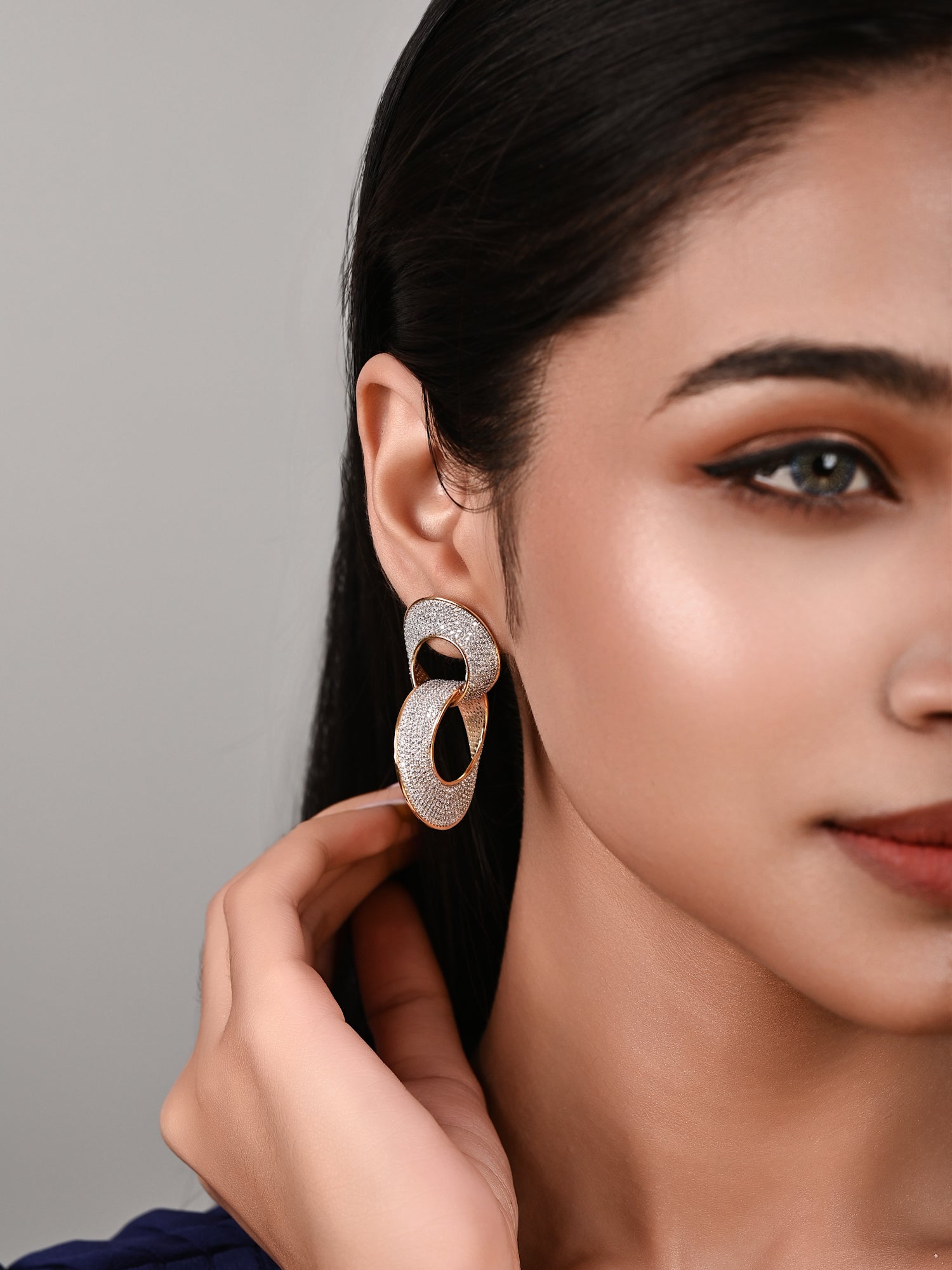 Discover the brilliance of our dazzling earrings, crafted to perfection. These exquisite pieces sparkle with unparalleled radiance, capturing the essence of luxury. Adorned with shimmering Cubic Zircon, they exude timeless elegance, perfect for any occasion. Elevate your style with these stunning accessories, designed to captivate and enchant. These are very light on the ears.
