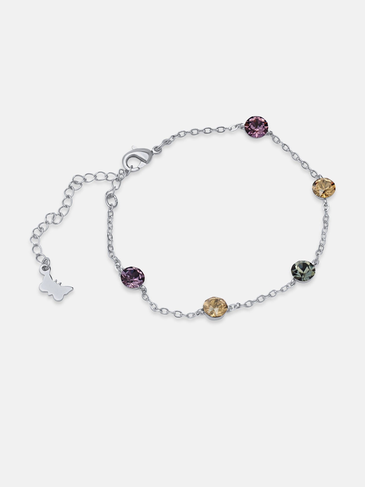 A modern classic, this Swarovski crystal wristlet features a pendant with a chain with a polished [gold-tone plated in rhodium finish. Perfect for layering or wearing solo, it adds understated sophistication to any outfit.