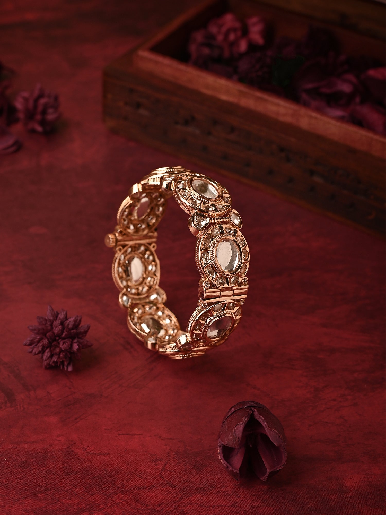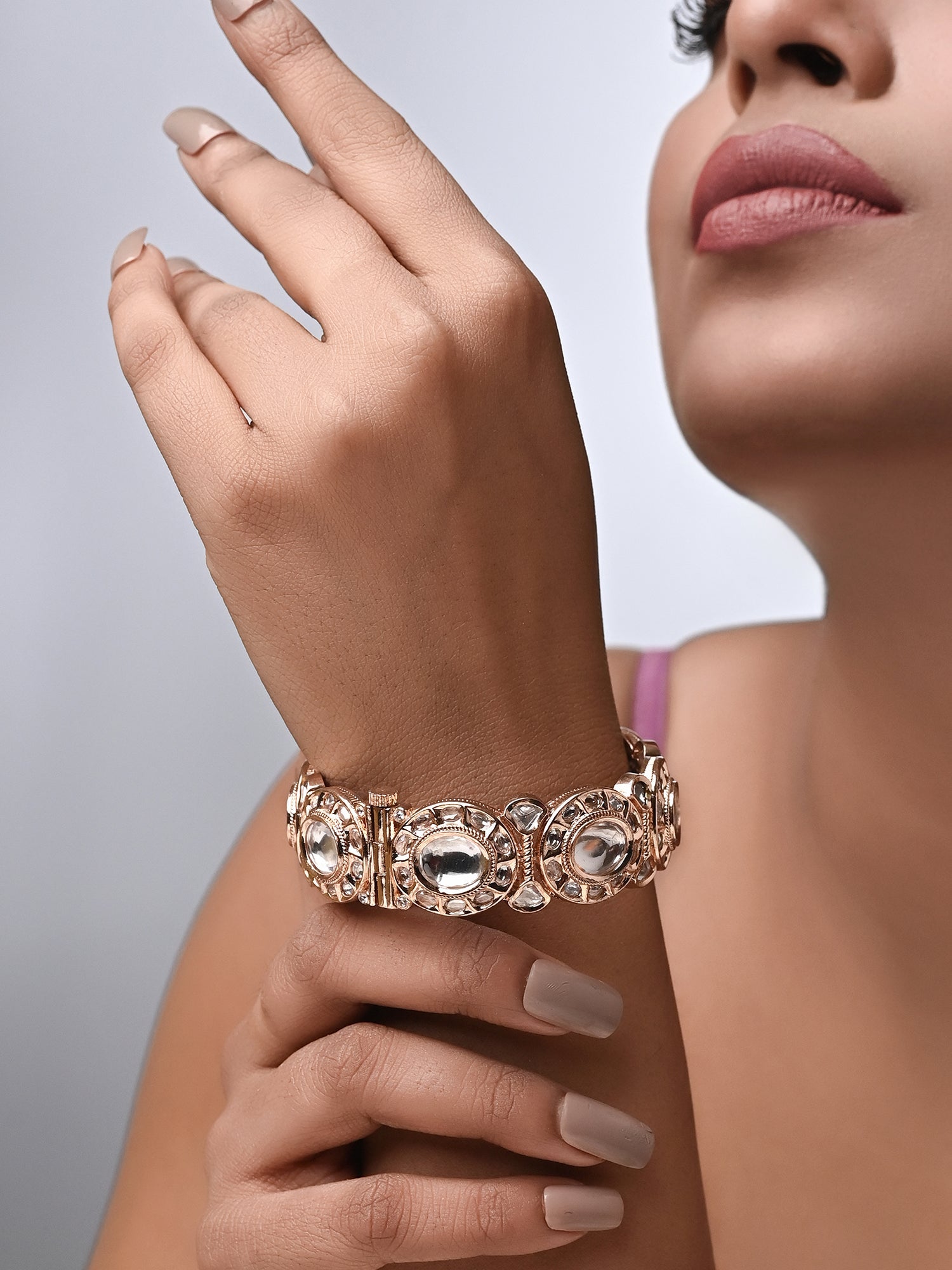 Indulge in the allure of our Jadau Bracelets, meticulously crafted to captivate. Each piece showcases intricate patterns and vibrant gemstones, exuding timeless elegance. Perfect for adding a touch of sophistication to any ensemble, these bracelets are an essential accessory for those who appreciate refined luxury and impeccable craftsmanship.