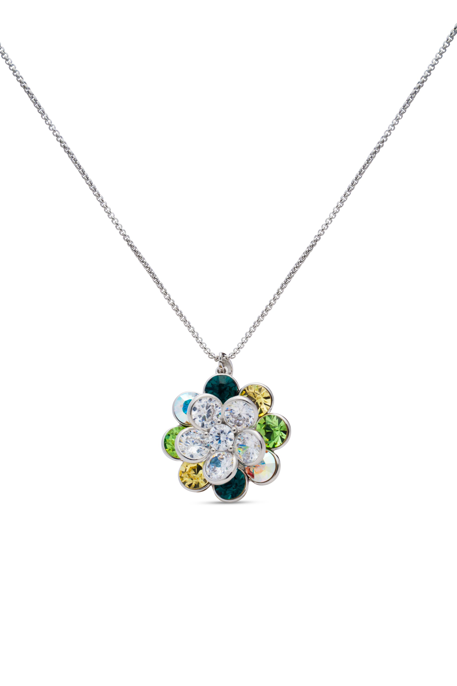 Shades Of Green Swarovski Crystals In Rotating Flowers Pendant