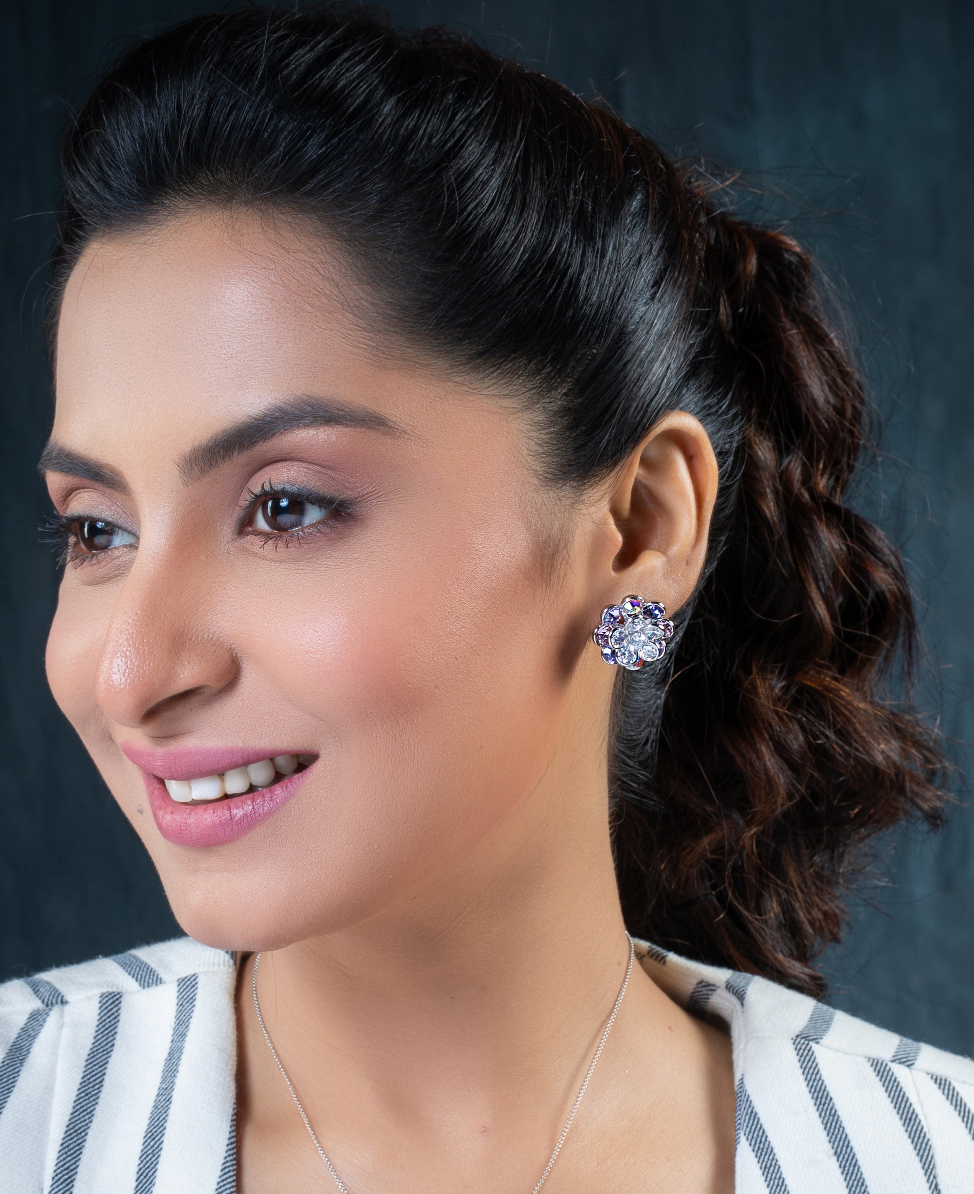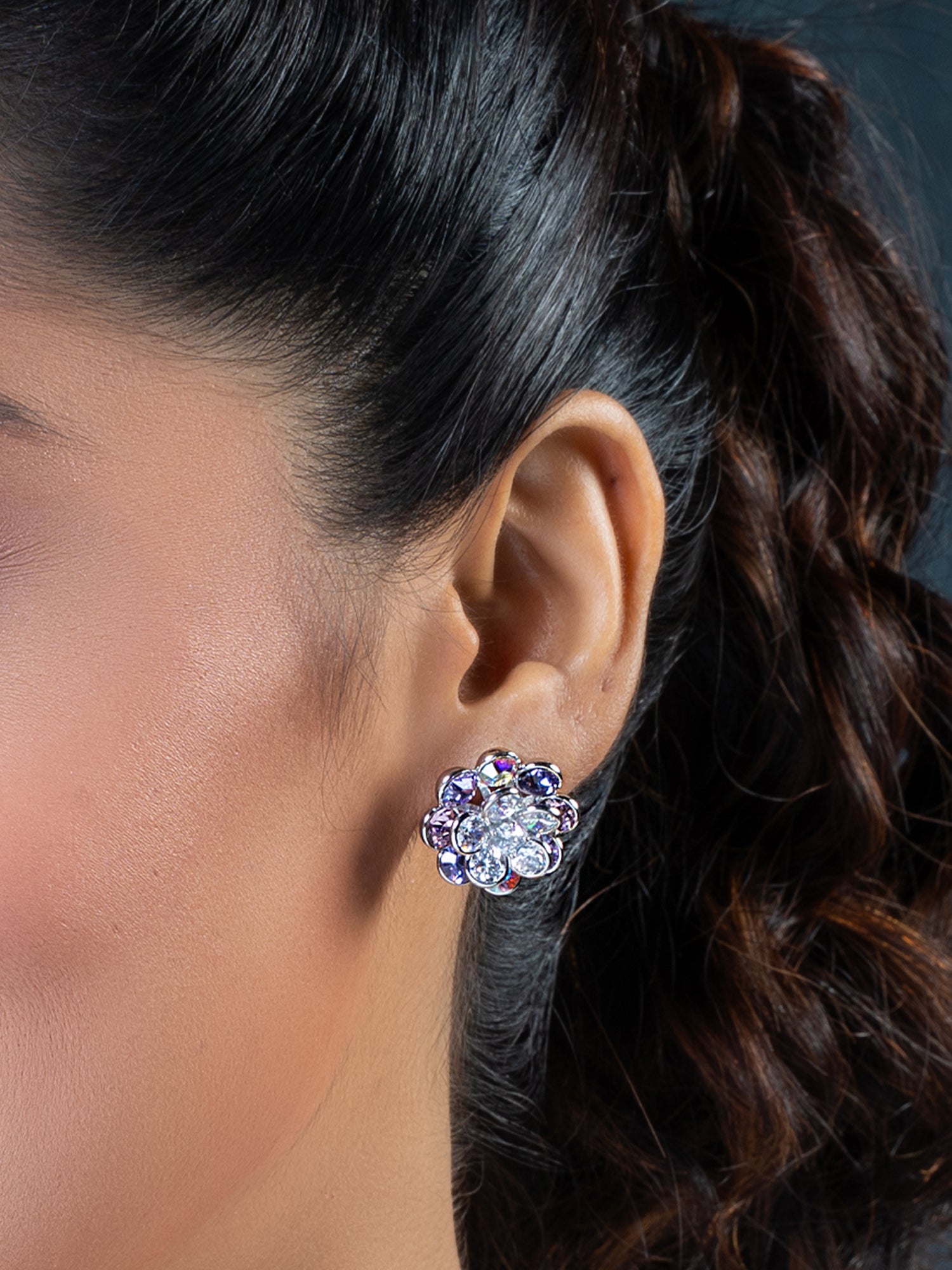 Shades Of Purple Swarovski Crystals In Rotating Flowers Earrings