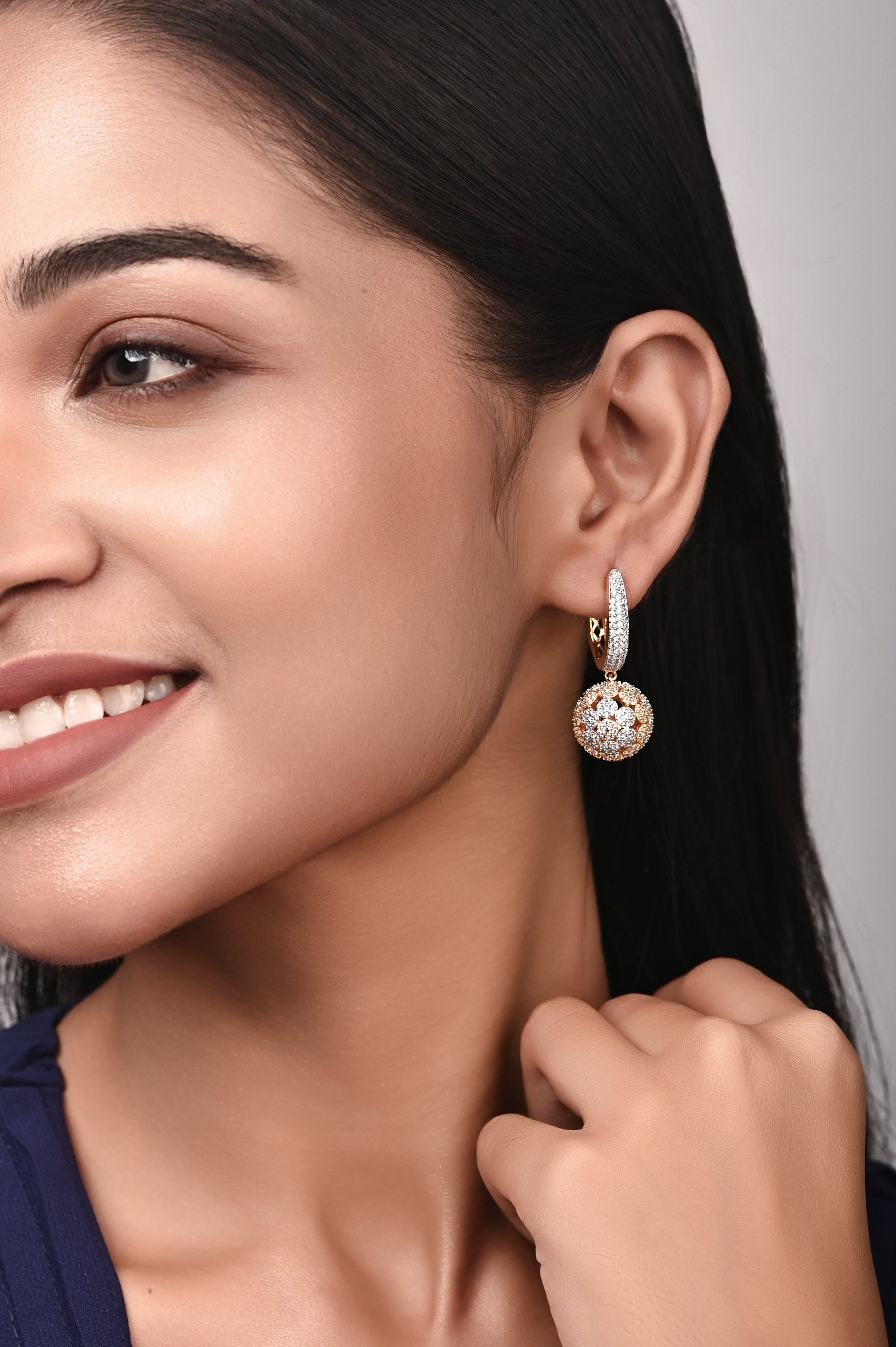 Discover the brilliance of our dazzling earrings, crafted to perfection. These exquisite pieces sparkle with unparalleled radiance, capturing the essence of luxury. Adorned with shimmering Cubic Zirconia Stones, they exude timeless elegance, perfect for any occasion. Elevate your style with these stunning accessories, designed to captivate and enchant.