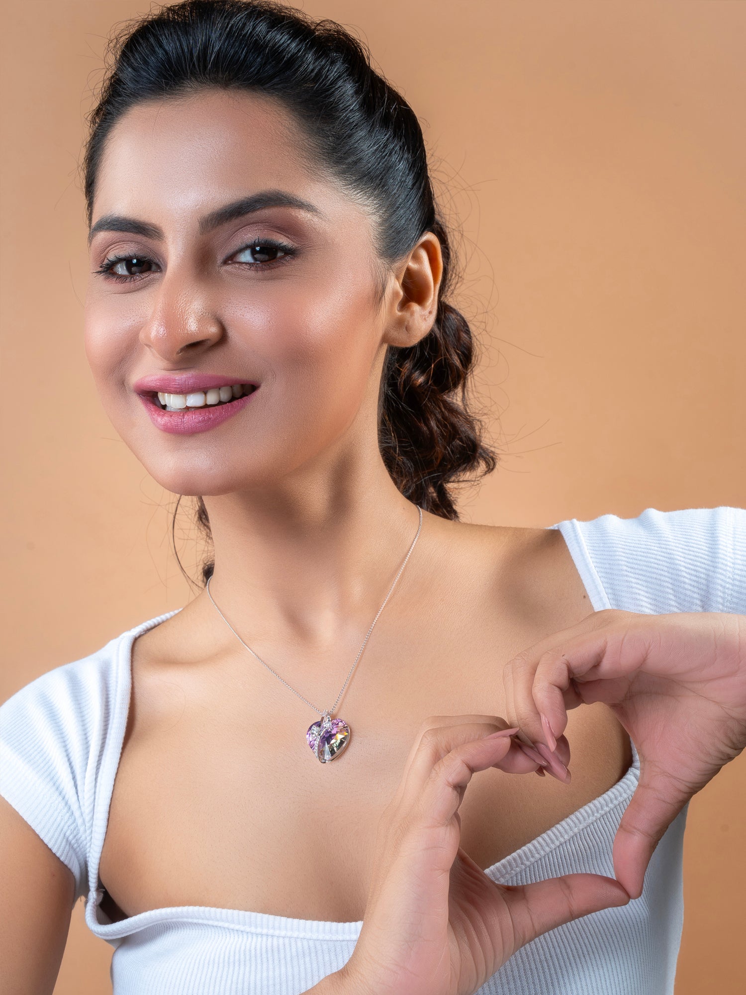 A modern classic, this Swarovski crystal pendant features a pendant with a chain with a polished [gold-tone plated in rhodium finish. Perfect for layering or wearing solo, it adds understated sophistication to any outfit.