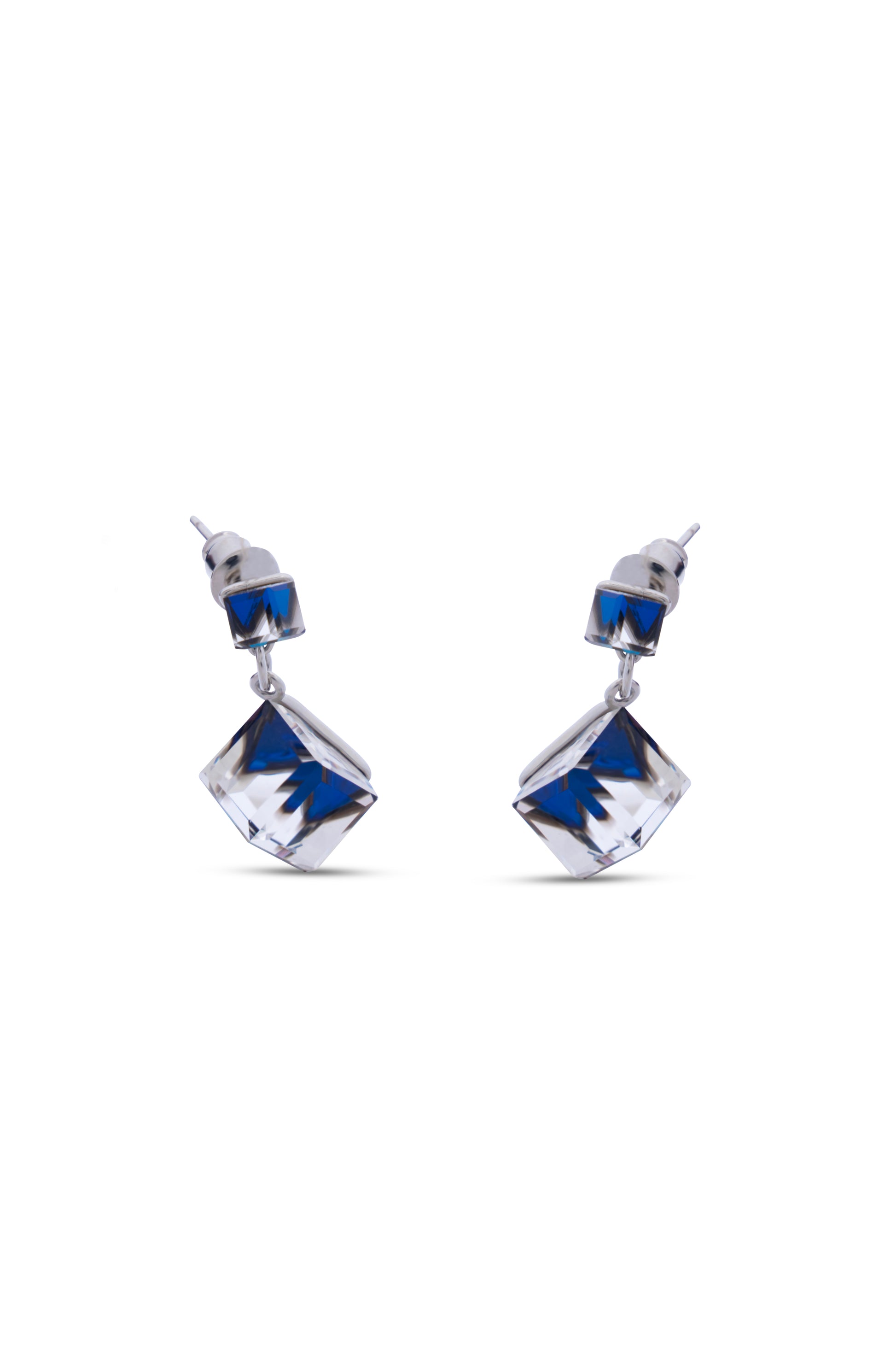 White & Blue Illusion Cube Swarovski Crystal Earrings